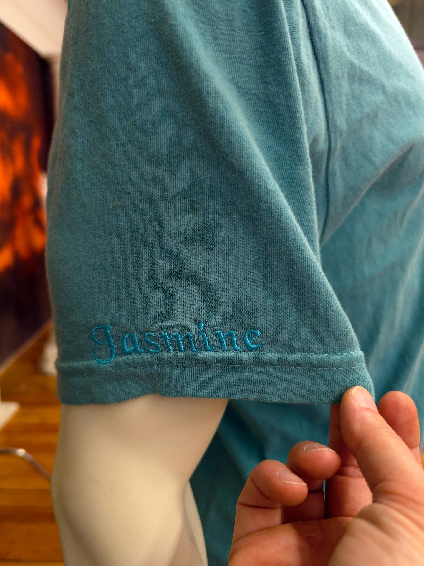 Do random princes try to climb over your balcony in the evening? Are they holding spontaneous parades in your city to impress you? Show them that you're not a prize to be won with this comfy teal t-shirt featuring an emblem of your guardian tiger -- and your princess name on the sleeve, just in case anyone needs a reminder. ;)
